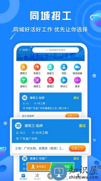1.致力为千万工友,班组长提供一个智能高效的工人招聘、工地找活、工地招工、装修等工程信息服务平台。