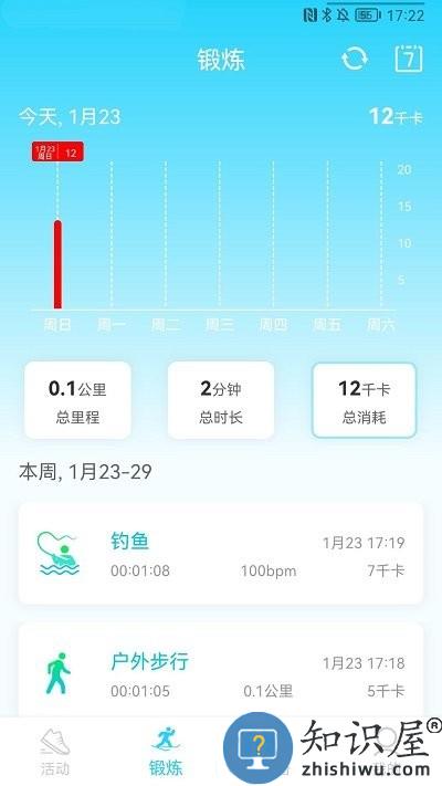 展示24小时中每个活动时间的运动量。以及每周、每月的总运动量和趋势统计图表。