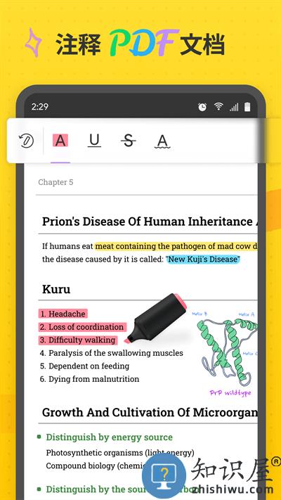 3、点击“高亮”选项,选择并将您想要高亮的文本,您还可以长按选项以选择画笔颜色。