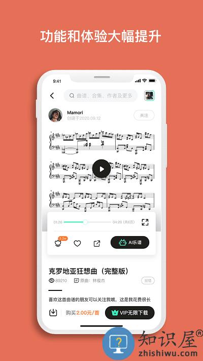 1、上线全新智能曲谱,可切换调式、调节速度、五线谱简谱一键互换。