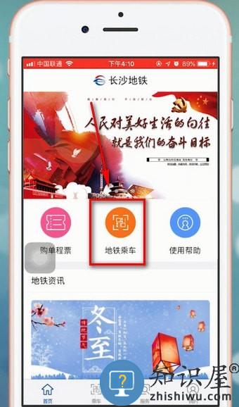 1.首先打开长沙地铁app,在首页点击地铁乘车功能就会出现二维码;