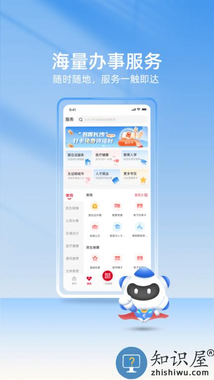 由长沙市人民政府打造的以“人”为中心,汇聚各类政务服务、公共服务、社会服务于一体的移动综合服务平台,以实现政务服务、公共服务、社会服务的“网上办”“一次办”“集约办”为目标,市民通过“我的长沙”这个窗口,足不出户查询、办理生活所需服务,随时随地享受优质服务,让“办事”不再排长队。
