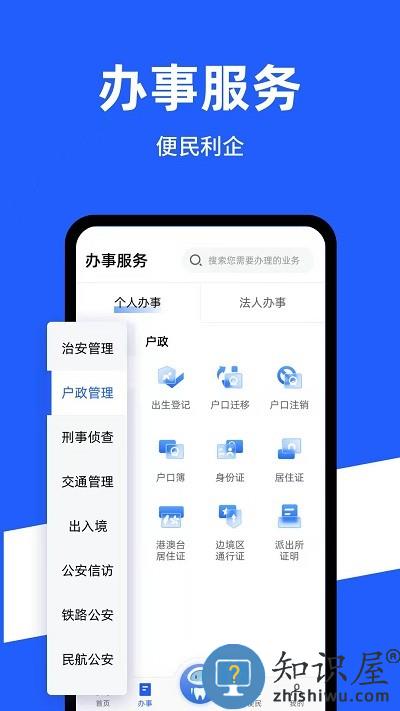 公安一网通办平台官方版能够为广大用户提供非常多的便捷,让大家享受便利的掌上办事服务,大家可以在这里办理各种需要在公安办理的业务,能够为大家查询个人信息,能够进行一些户口的登记和迁移等等,全网共同,没有地域的限制,让大家不用会老家就可以办理很多需要在本地办理的事项。