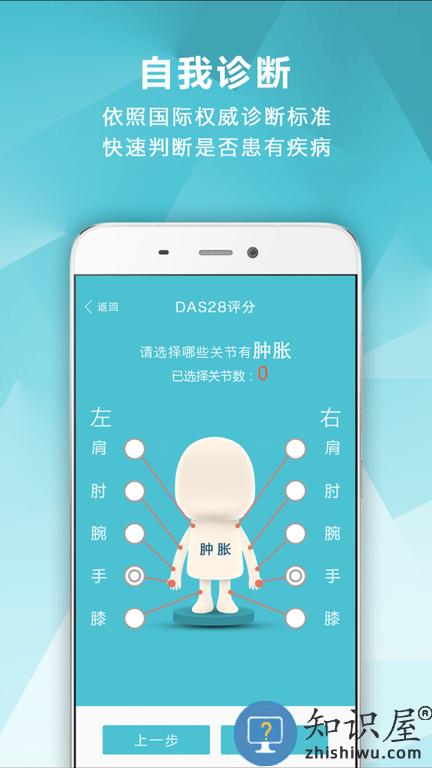 患者端包括自我评估(如疾病活动度评估DAS28、躯体功能评估HAQ)、用药管理、不良事件管理和实验室检查等主要组件,界面友好,操作简便。