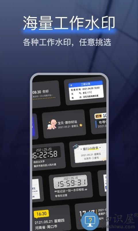 海量水印模板,适用多场景拍照、打卡、记录,包括施工信息、时间地点、会议记录、宝宝成长记录等水印模板。