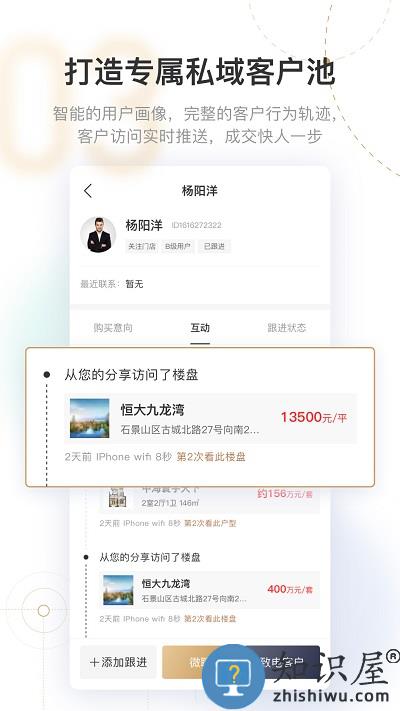 2.有的用户画像体系和浏览轨迹,用户购买需求一目了然,客户及时推送经纪人。