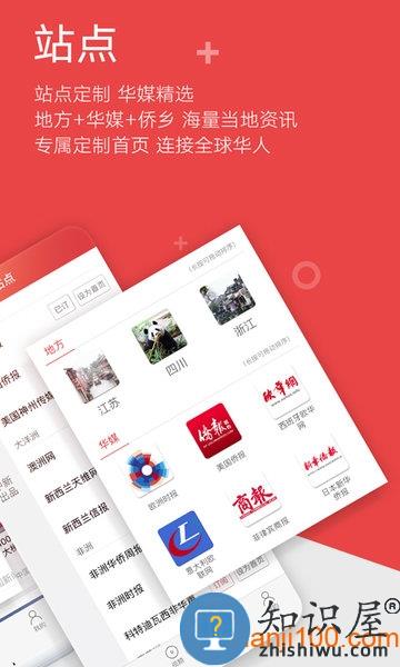 站点定制:整合地方、华媒、侨乡、中国新闻周刊频道,聚合海内外华文媒体优质内容,一键定制属于你的专属首页,连接全球华人。