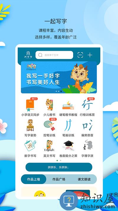 新汉字宫app官方版是一款训练学生认字、练书法、读国学、朗诵课文的软件,帮助小学阶段的学生更好的沉浸在语文的学习之中,让大家可以了解语文的学习历程,深刻的认识中华传统文化之美,发自内心的爱上语文,还能跟着软件学习课本上的知识哦!