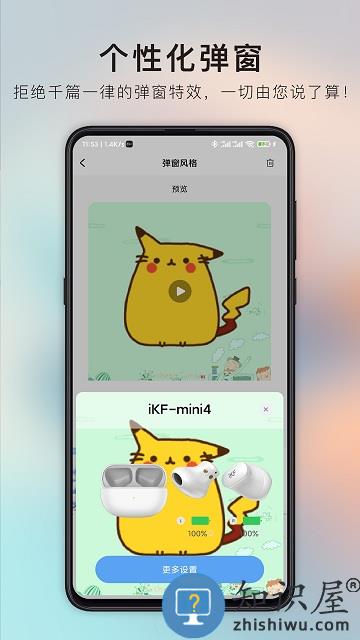 这一个应用专为iKF品牌旗下蓝牙耳机提供服务,它不仅可以提供耳机弹窗、电量显示功能,还可以根据您的喜好自定义各项功能
