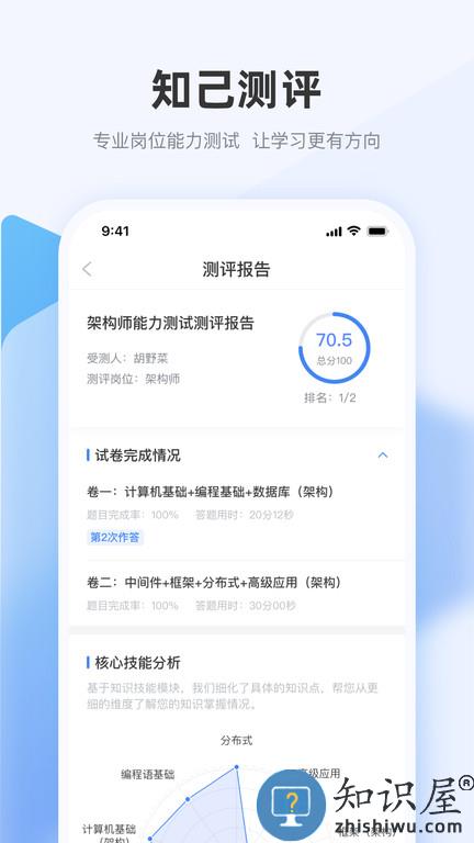 面向企业客户,提供结合岗位能力模型的测、学、考、评一站式学习平台功能和服务,让学习者能够学到自己需要的知识,能够直观地看到自己的学习进步与成果,也让学习项目的成效真正落在企业发展所需的实处。