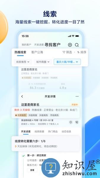 抖音销帮app是销售提升业绩的好帮手,器内置了海量线索等你来挖掘,让转化进度一目了然,还可以让客户信息多维度展现,经营动态尽在你的掌握之中!
