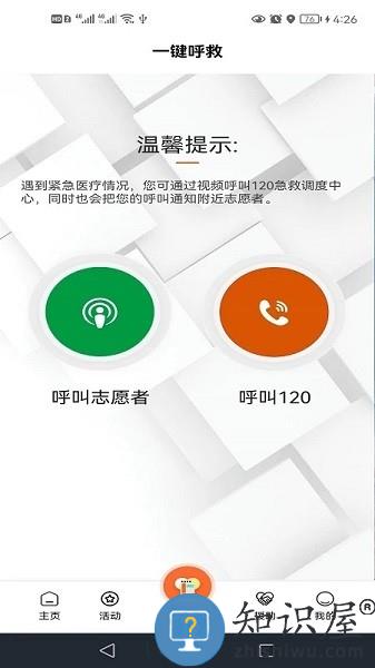 一键呼救:在遇到突发情况,需要帮忙时,通过一键呼救能向120或者附近的志愿者进行求助。