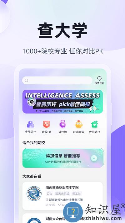 覆盖全国高职单招院校,汇集双高院校、国家级示范职业院校,查院校选专业一站式服务,院校介绍、招生简章、考试安排、院校PK、排行榜一应俱全帮你快速选择心仪学校