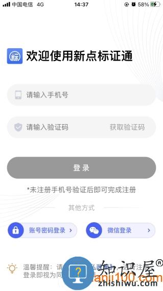 初次使用新点标证通的用户打开app后,输入手机号,点击【获取验证码】,输入正确的验证码,验证成功后即可完成注册,登录app成功,见下图;