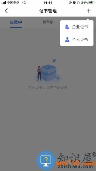 按照指引点击“+”号,可选择申领企业证书,见【图1】;