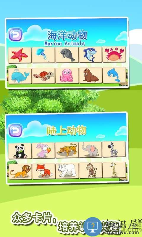 3.教学教程包含婴幼儿经常接触到的事物的素材,例如蔬菜、动物、城市、卧室等等。让孩子在儿童早教软件中学认字,让孩子畅游在认单词的欢乐海洋中。