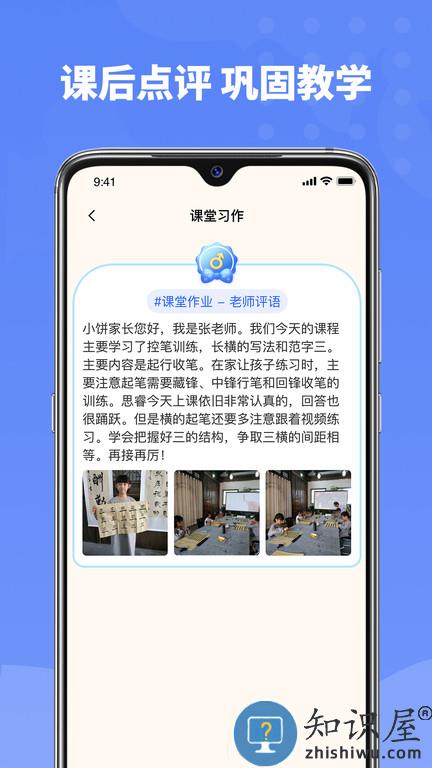 为了让家长放心,老师可通过课堂点评将学生每节课的作品、作品的点评详情,拍照并上传,家长可通过学生端查看2265孩子的课堂表现及课堂成果.
