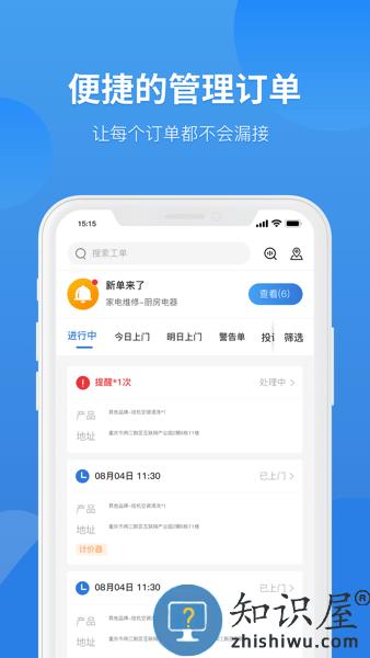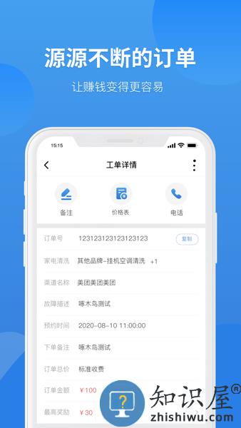 啄木鸟家修工程师版可以方便我的工程师师傅进行接单和工单记录,一键备注,拍摄上传现场照片,查看自己的提成与绩效,一键查询客户需要维修的地址,提升您的工作效率!