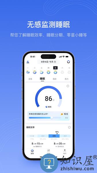 1. 睡眠监测:能准确记录您晚上的睡眠和午休情况,包括睡眠效率、不同睡眠阶段(快速眼动期、轻度睡眠期和深度睡眠期)所占时间,以及睡眠评分。与其他智能可穿戴设备相比,它持续不断地记录您的身体指标,为您提供更全面的睡眠数据。同时,指环的轻巧人体工学设计保证您舒适的睡眠体验,不会打扰您的休息。
