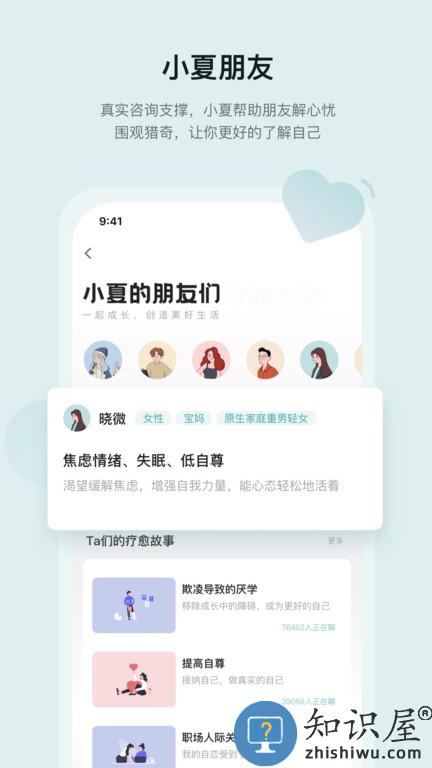小夏在呢软件主要提供了冥想、心理等服务,这里有非常全面的心理服务,支持在线测试和咨询,还有各种情绪调节的干货,同时支持冥想、听舒缓音乐、白噪音、大自然的声音等。