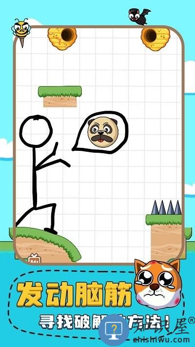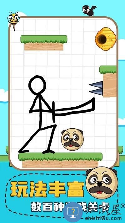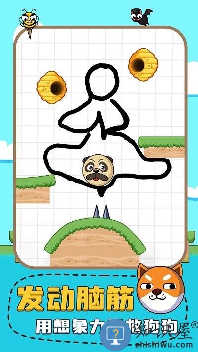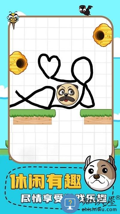 画线玩法的益智游戏。玩家通过画线阻止蜜蜂伤害狗狗,,因为在游戏中你要帮助那只可怜的狗狗,千万不要被蜜蜂蛰的,只是有些关卡实在是非常有挑战力,最好跳出常规思维,剑走偏锋,不要让狗狗花容失色,保护好狗头!
