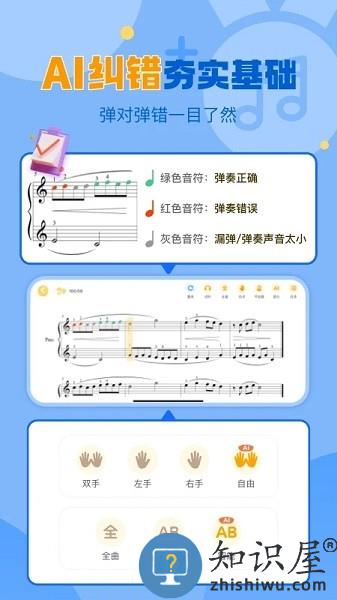 我们来帮你!智能逐个识别音符,不会弹会有提示,让你把基础练扎实,真正学会一首曲子。
