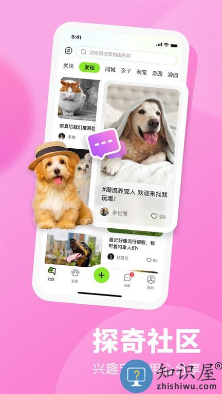 探奇动物界是一款针对爱动物和养宠物的年轻人,主打宠物休闲、服务的社交平台。
