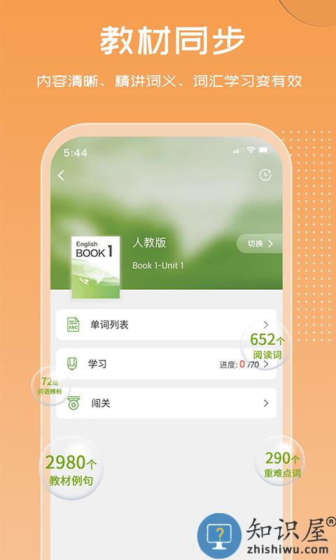 轻松实现各版本教材各模块各单元词汇的同步学习,方便预习与复习;