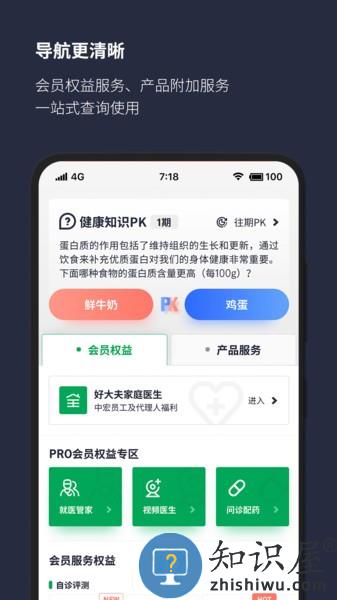 3、【健康】页面:导航更清晰,会员权益服务、产品附加服务,一站式查询使用;