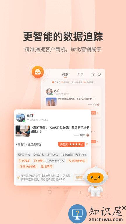 --通过客户感兴趣的精选资讯以及多样化的互联网展业工具帮助保险人高效获客。