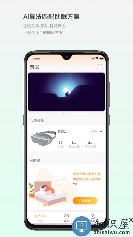 筑眠是一个专注于睡眠的手机软件,以世界先进睡眠疗法为基础,为用户提供多样化、个性化的睡眠场景,有针对性地缓解不同人群的睡眠问题.缓解使用者的压力与焦虑情绪,大大提升睡眠效率.