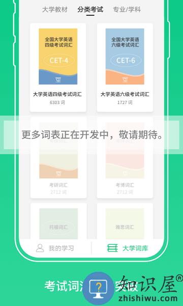2.考试词汇集中突破:收录全国大学英语四、六级考试词汇,帮助用户考前有针对性地学习或集中复习词汇,以期助力通过相关考试。