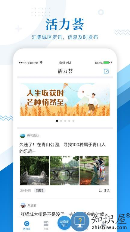 奔跑吧青山app最新版是非常好用的青山区服务软件,用户可以在手机上查看本区的最新资讯,可以看到青山区的漂亮景色、能够查看发生的精彩事,还能查天气查交通,办理便民和政务事项。