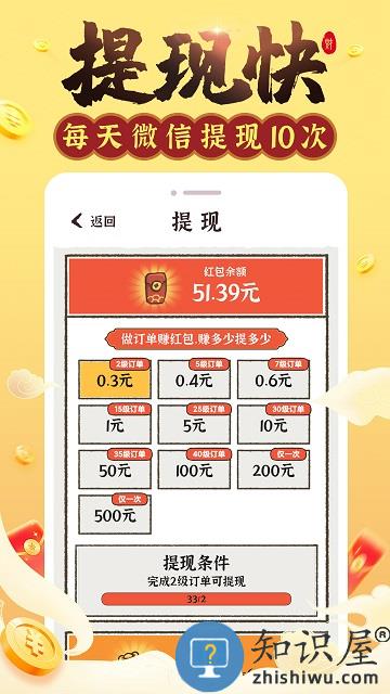 红包可提现,秒到账。