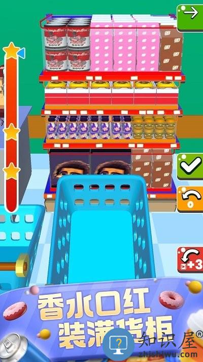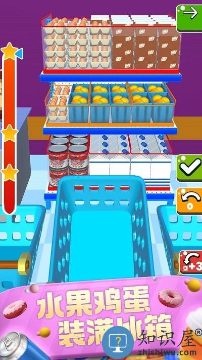 玩起来轻松上手的休闲益智游戏,玩家在游戏中担任一名超市陈列师陈列摆放的需求很多,需要将不同的商品分类放置在合适的位置,在这个游戏里,你经营着一家超市,饮料零食果蔬玩具……商品应有尽有,你需要做的就是分门别类将这些货物归置收纳、摆放整齐。
