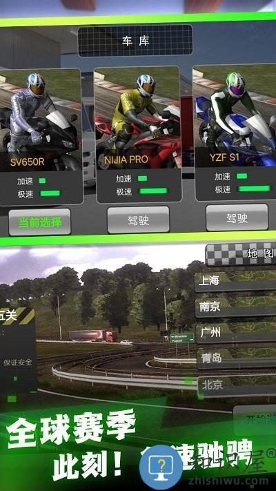 2、作为一名摩托驾驶员,你可以在不同的赛道上提升驾驶技术,赢得比赛。