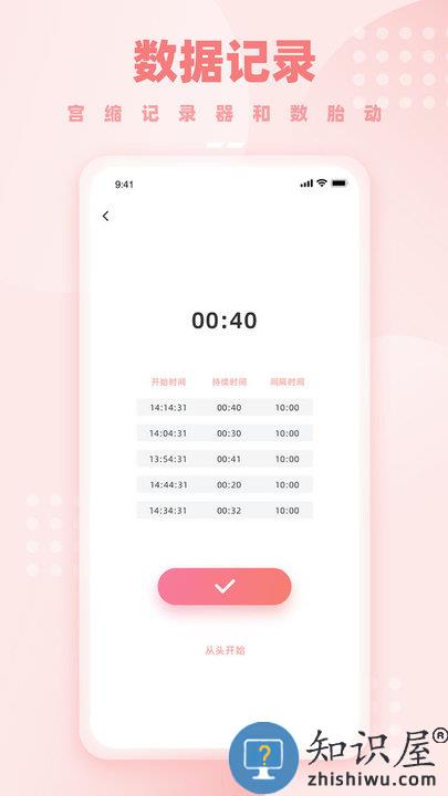 1.数胎动,用一个踢腿计数器记录你的宝宝。