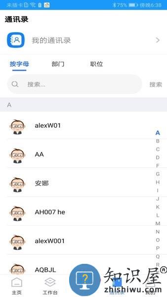 3.通讯录:您可能忘了同事的电话或其它联系方式,但只要登陆平台即可查找他(她)的联系方式,并且可以点击通讯录电话或邮件即可对同事进行电话联系(需要获取手机联系人数据权限和打电话权限)