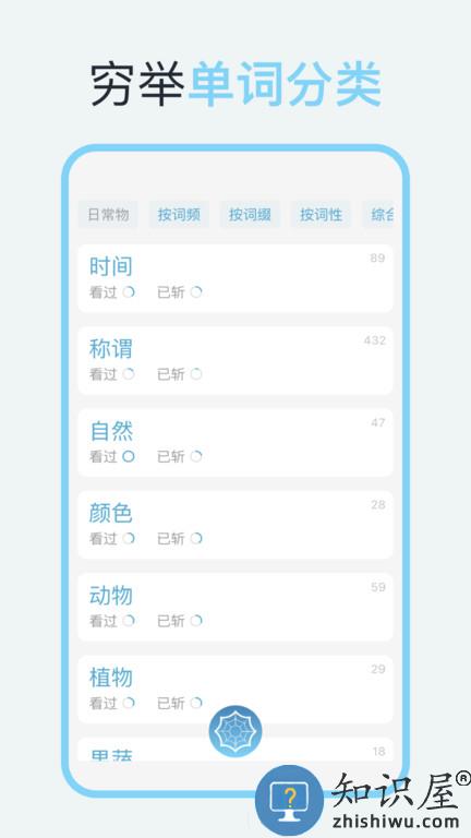 *用户在单词学习的过程中摆脱了任务式的背单词方式,通过将各种不同类型的单词进行分组记忆。