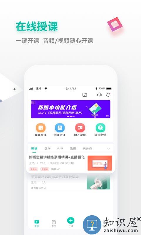 4、一键开课/随时录课。无需繁琐设置,即可快速创建教室,分享课程码,学生进入后直接上课。微课录制,简单易上手,多平台转发,提升传播力。