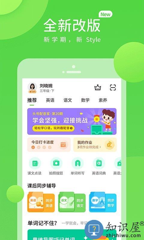 字词闯关、作文宝典、课内同步学、老师作业、课文跟读、名家朗读