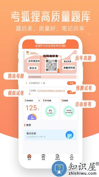 考狐狸是一个题目多,质量高,笔记共享,针对医学、药学、护理、医技等各专业永久免费的题库.包含【章节练习】【模拟考试】【错题复习】熟练掌握题感,考试更加轻松.