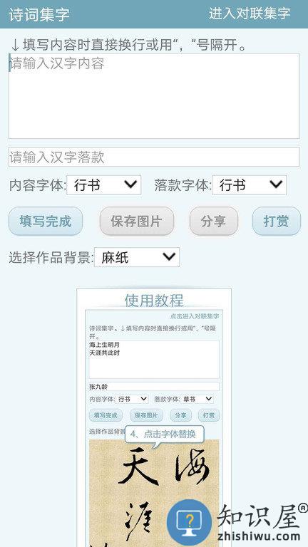 4、书法名家字体库,配合诗词曲生成书法字帖;