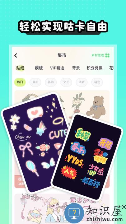 1、有超多原创主题可爱贴纸,背景,画笔素材,定时持续更新。