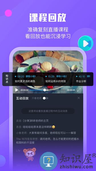 为各专业提供相应的在线课程。课程回放,精准再现直播课程内容,观看回放