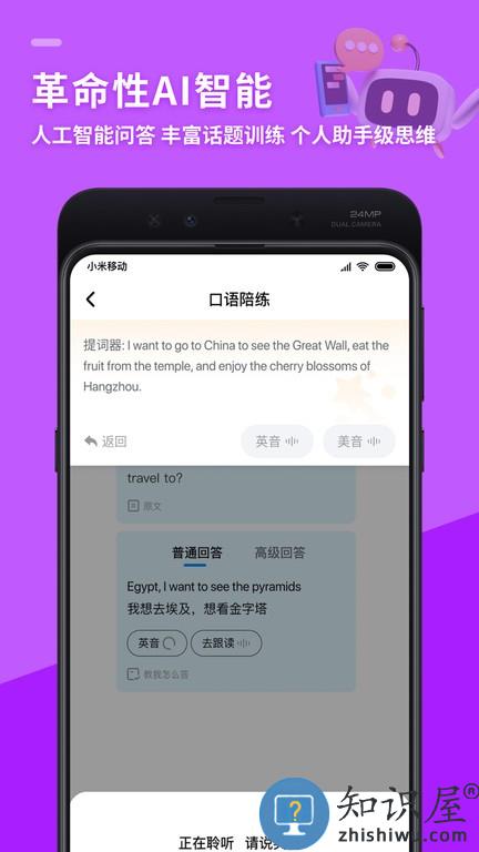 通过ai技术赋能雅思口语模考,实时出分无需再等待。根据你的回答,多维度评分及建议,给你最清晰直观的评分结果。