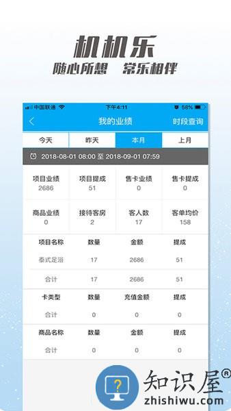 每天都会为你统计业绩情况,每天的客人数、充值金额、接待客房等等;
