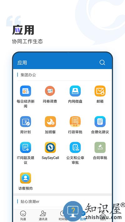 1、可以通过IM、短信、高清语音电话随时随地与企业内部员工保持沟通。
