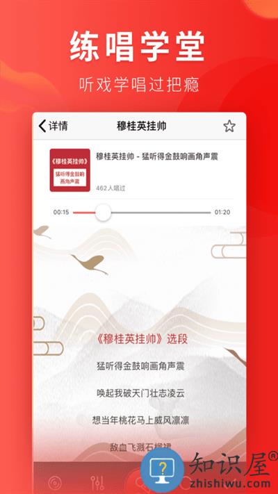范儿曲库带你走进京剧戏院的效果,随时随地的可以让你演唱着名京剧唱段,唱完每段都可以保存本地,想让更多的人听到你自己唱的可以分享到微信好友、朋友圈、qq空间,让更多的2265好友听到自己在使用起范儿APP后自己水平的提升。