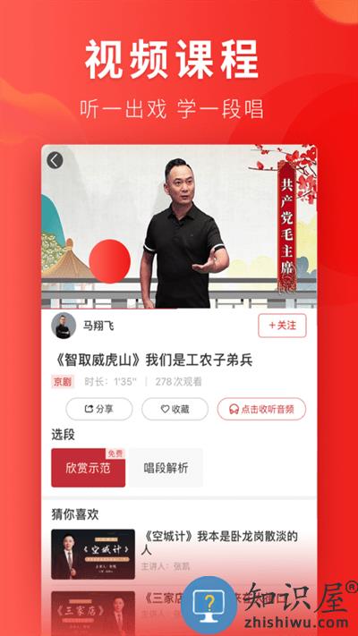 每一段视频由我们签约的演员精心录制,每一段唱腔由我们的演员详细解析,选你喜欢的唱段,看你喜欢的导师讲解,让我们的导师帮助你提高自己的水平。